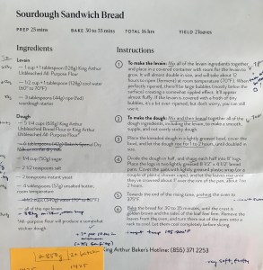 I post recipes for your entertainment and edification, but also so that when I lose my scribbled-on bits of paper I’m not left digging through piles of scrap-paper notes while muttering “I just saw it here somewhere!” For example, today’s recipe is my current favorite sourdough bread recipe. Here’s what it looks like when it’s at home:
