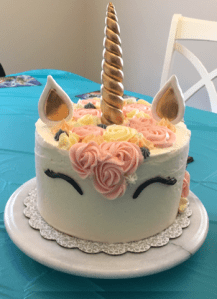 Works well for anywhere you need a mostly white frosting, and colors well. Just ask my friend Uni the Unicorn!